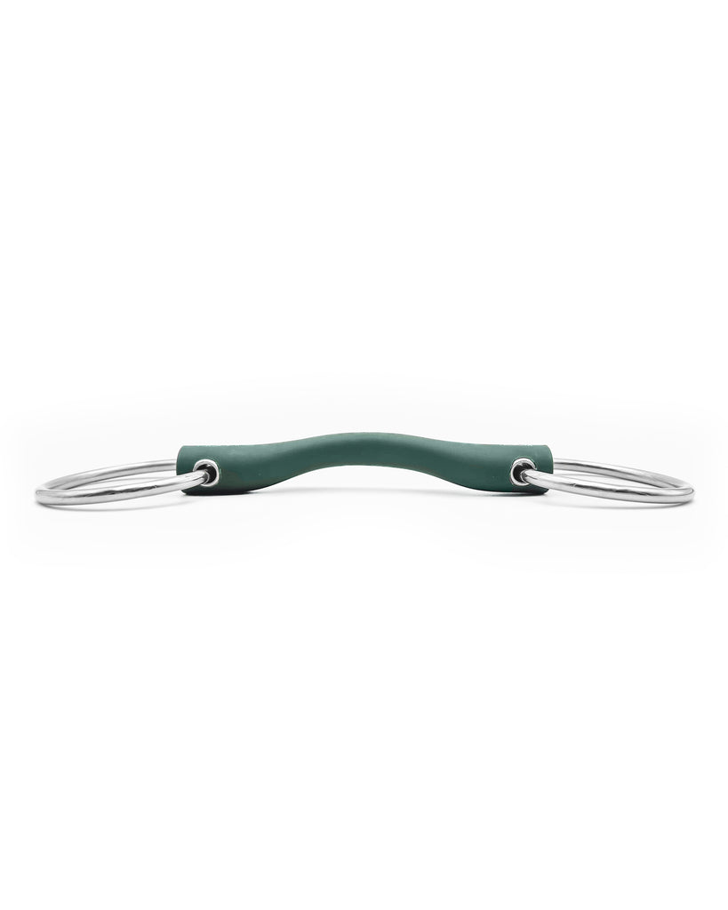 TPU-materiaalista (Thermoplastic Polyurethane) valmistettu suukappale yhdistää kumin pehmeyden ja kestävän rakenteen – tarjoten hevosen suuhun miellyttävän tunteen ja ratsastajalle vakaan, mutta lempeän kontaktin. Materiaali on turvallinen, ei ime kosteutta ja on helppo pitää puhtaana.