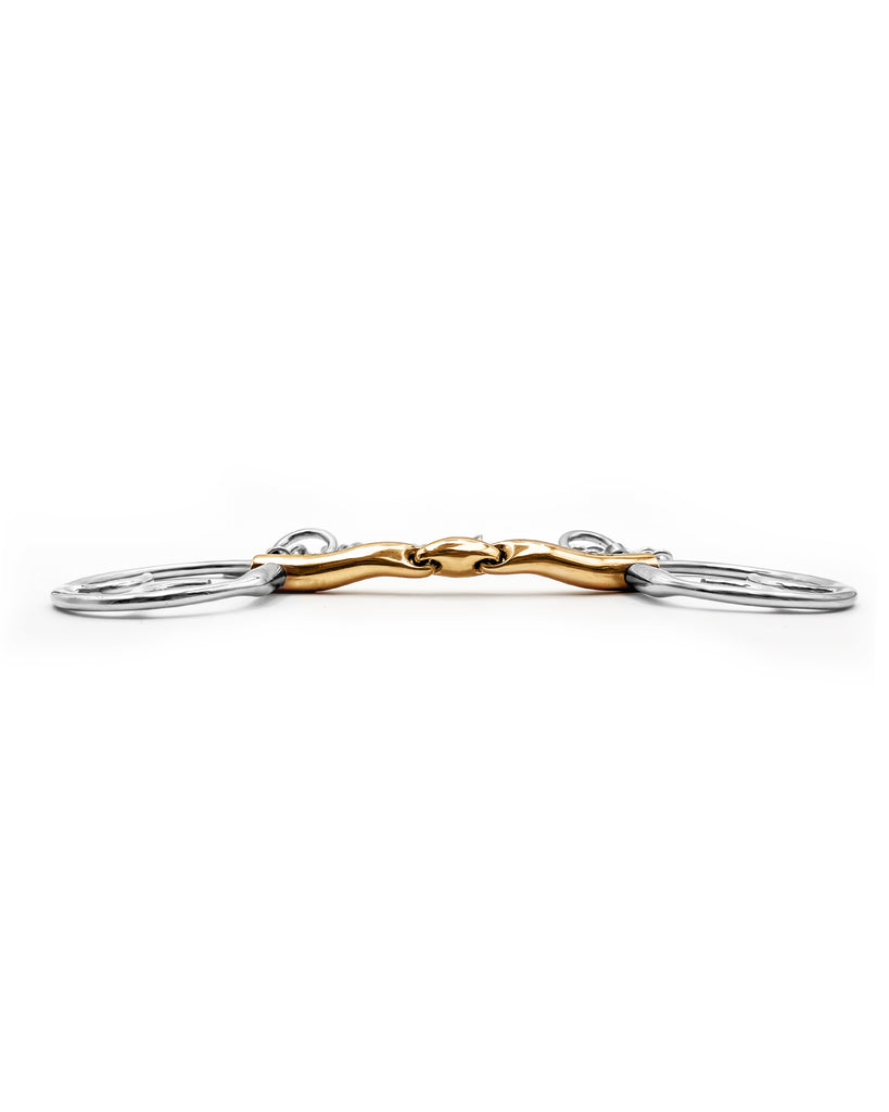 Sweet Gold™ -materiaali sisältää kuparia, joka tekee kuolaimesta hieman pehmeämmän ja maistuvamman hevoselle. Tämä rohkaisee hevosta pysymään kuolaimella ja parantaa ohjastuntuman vakautta. Huomaathan, että runsaasti kuolainta purevilla hevosilla pintaan voi tulla hampaanjälkiä.