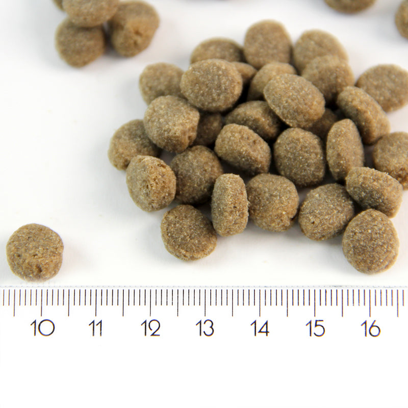 Ravintoaineet: Raakaproteiini 26 %, raakarasva 16 %, raakakuitu 2,5 %, raakatuhka 6 %, kosteus 8 %, omega 6 1,9 %, omega 3 0,8 %, kalsium 1,4 %, fosfori 0,8 %, DHA 0,1 %, EPA 0,05%