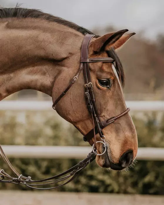 Kun käytät gag -hihnaa tavallisen nivelen kanssa, suosittelemme käyttämään kaksia ohjia, joista toinen on kiinnitetty gag cheekiin ja toinen niveleen.