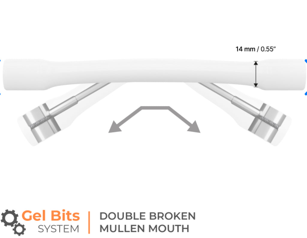 Etsitkö pehmeää ja hevosen suuhun ystävällistä kuolainta ilman kompromisseja toimivuudessa? Winderen Gel Bit Systemin Double Broken Mullen Mouthpiece yhdistää anatomisesti muotoillun kolmipalan ja suoran suuosan parhaat puolet innovatiiviseen geelimateriaaliin.