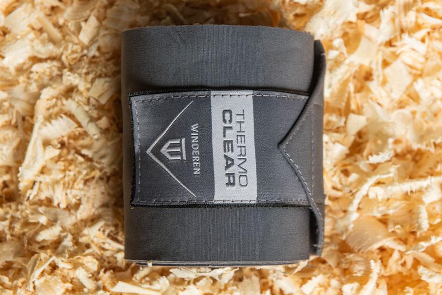 Thermo Clear thermoaktiiviset pintelit on valmistettu materiaaleista, joissa on höyryä läpäisevä kalvo, joka ei tartu lastuihin ulkopuolelta. Käytetyn materiaalin ansiosta nämä siteet eivät ainoastaan pidä jalkoja tehokkaasti lämpiminä käärimisen jälkeen, vaan ne myös sallivat hengityksen koko pinnallaan ja siirtävät aktiivisesti kosteutta pois ja auttavat siten välttämään jänteiden ylikuumenemista.